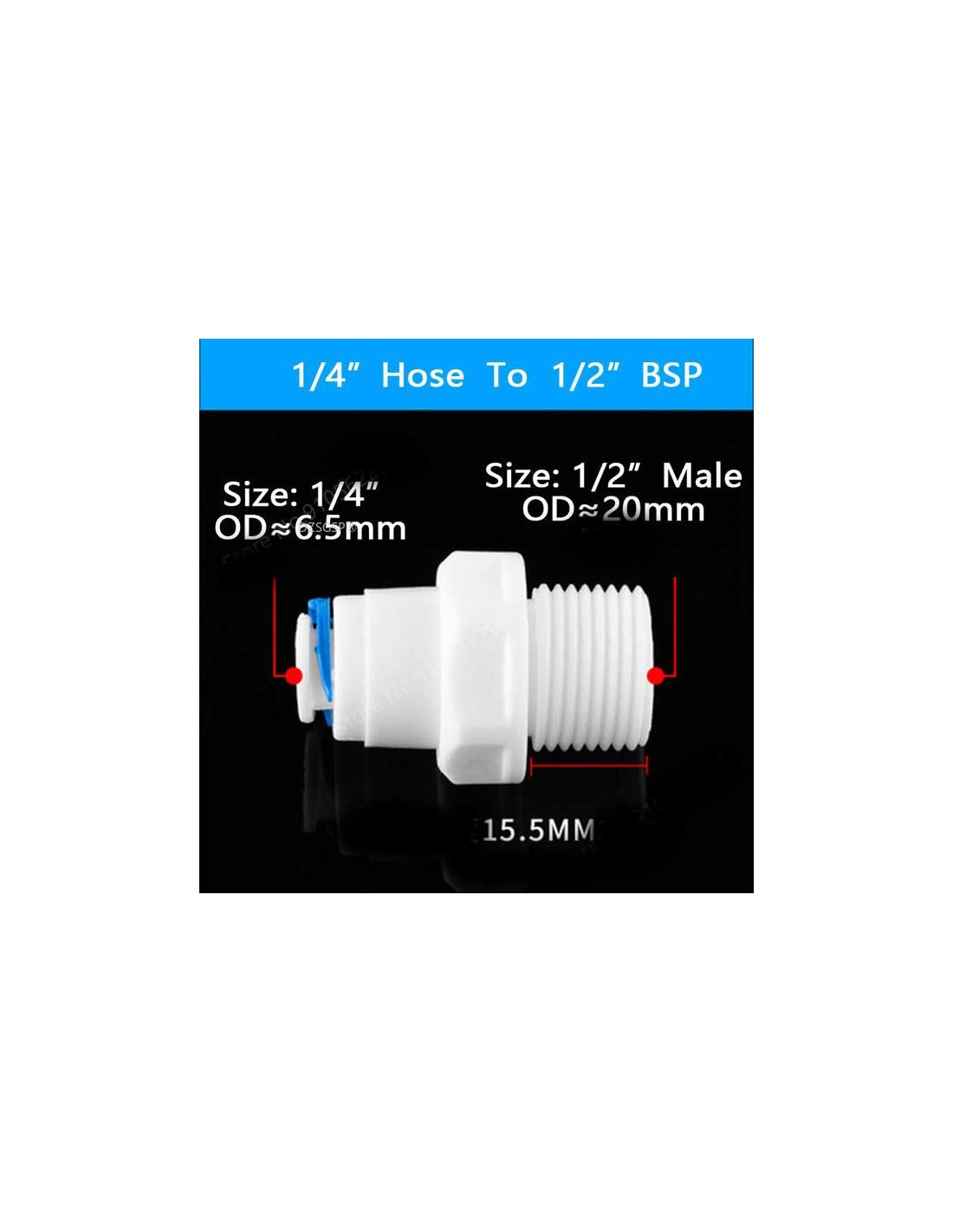 Aceasta mufa de conectare poate conectata pe teava de 1/2. Reductia are filet exterior si in cealalta parte iesire pentru furtun de 6 mm (1/4) cu cenector rapid.